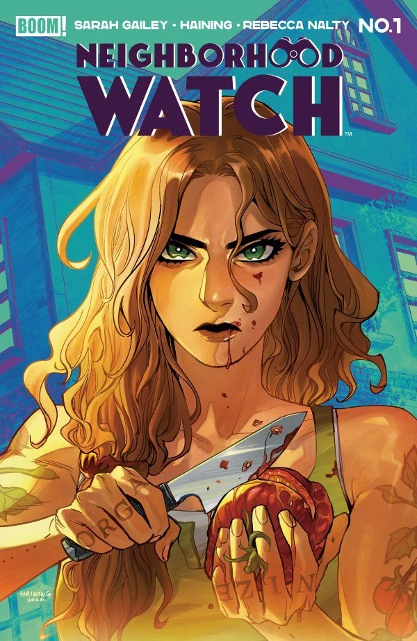 Neighborhood Watch #1 - Written By Sarah Gailey – Illustrated By Haining – Colors By Rebecca Nalty - Letters By Jodie Troutman – Edited By Elizabeth Brei - Published By BOOM! Studios